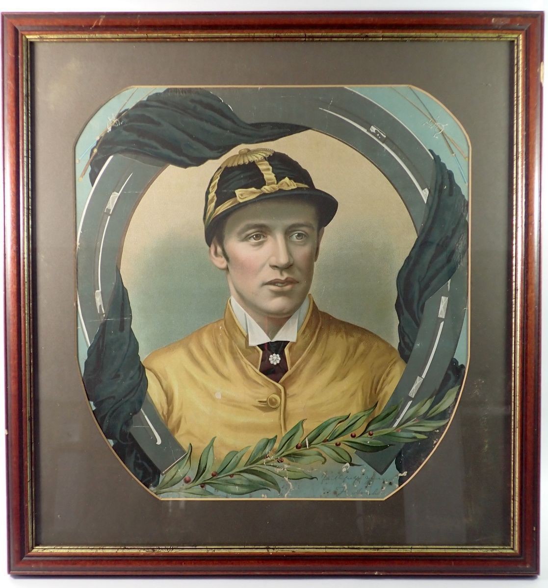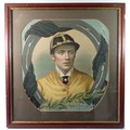 A Victorian chromolithograph of Fred Archer in memoriam with facsimile signature, 43 x 41cm